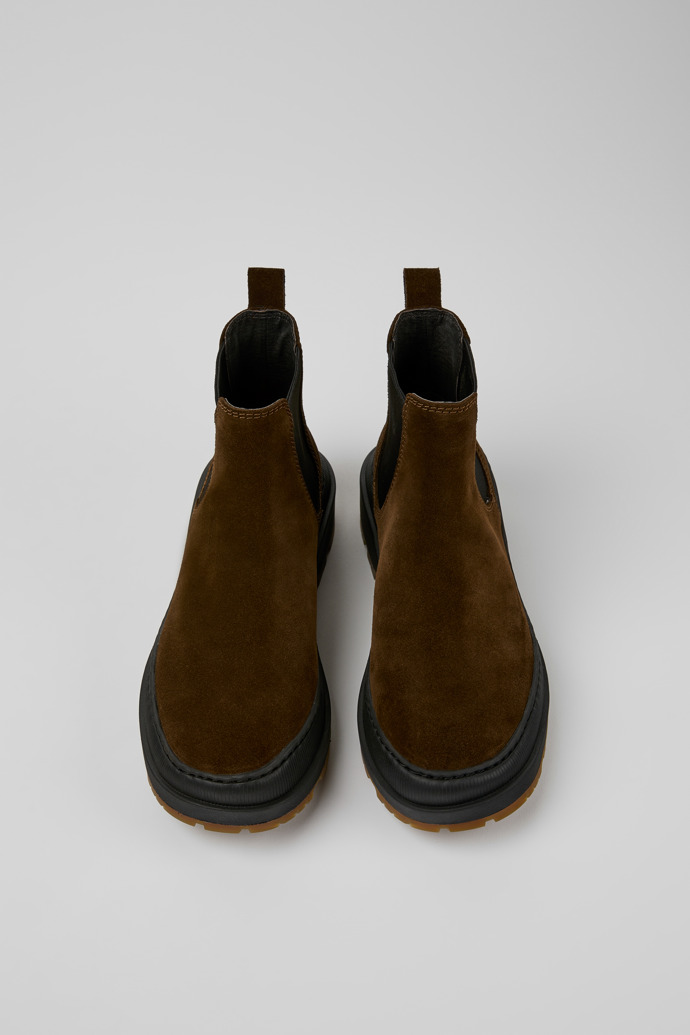 Botín marrón de piel nobuk para mujer con entresuela de EVA, plantilla OrthoLite Recycled y suela Michelin de 27 % de caucho natural.
