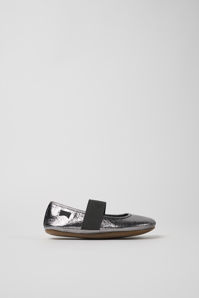 - Camper Right - Bailarinas para niños de piel gris metalizada